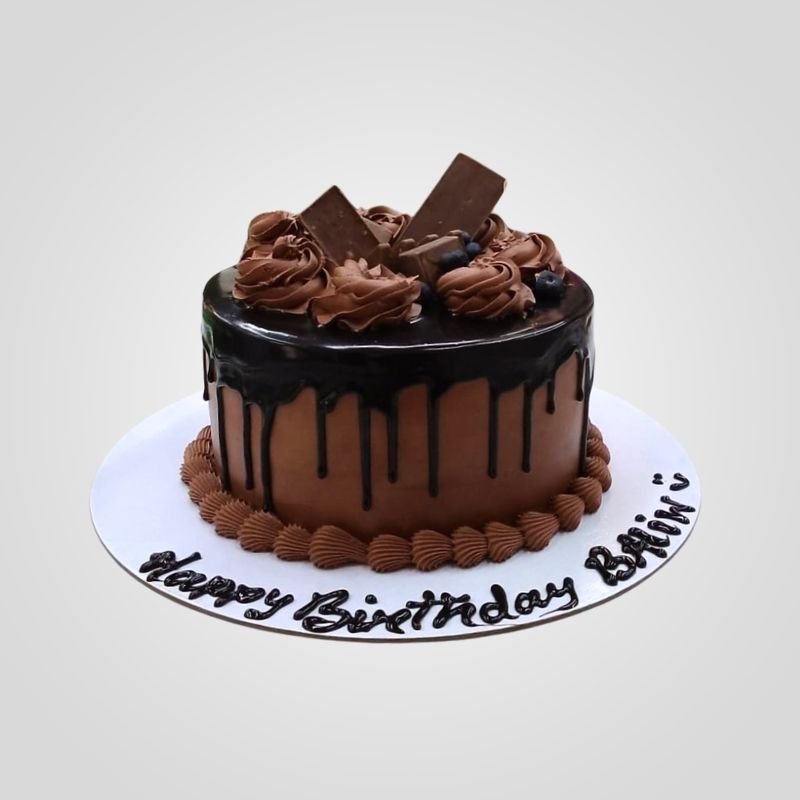 Treat yourself to our amazing Chocolate Drip Cake, the perfect dessert for anyone who loves chocolate. This rich chocolate cake is covered in smooth frosting and has a dark, shiny chocolate drip running down the sides. The top is beautifully decorated with swirls of chocolate cream, pieces of chocolate bars, and a few fresh blueberries. It’s a simple but very elegant drip cake.